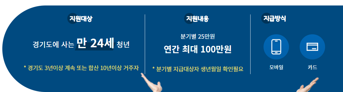 신청일 기준 경기도에 주민등록을 두고 있는 만 24세 청년으로 최근 3년 이상 주민등록을 두고 계속 거주하는 경우나 합산 10년 이상 주민등록을 경기도에 두게 되는 경우에 청년기본소득을 받으실 수 있습니다.