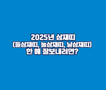 벌써 2024년 한 해가 다 가고 새로운 2025년 을사년(乙巳年)을 맞이하였습니다. 특히 2025년은 푸른뱀의 해인데 뱀은 재물과 지혜, 신중함을 뜻하고 푸른색은 희망을 상징해 아주 좋은 의미를 가지고 있습니다. 2025년에는 이 글을 읽고 계시는 모든 분들께서 희망차고 행복한 한 해를 보내시기 바랍니다. 오늘은 2025년 삼재띠에 대해 말씀드리려고 하는데 본인이 삼재띠에 해당한다고 해서 불안해 하거나 기분나빠하지 마시고 뭐든 조심해서 나쁠 것 없으니 재미로만 봐주시면 좋을 것 같습니다.